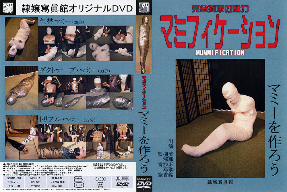【包帯マミー】包帯でぐるぐる巻きにされ、乳首だけは、はみだしとってもエロイ姿に興奮すること間違い無しです!【ダクトテープ・マミー】かすかな隙間から息ができるかできないか!テープで密着した姿もたまりません!【トリプル・マミー】3人の女達が包帯、縄などで縛られ身動き取れません!